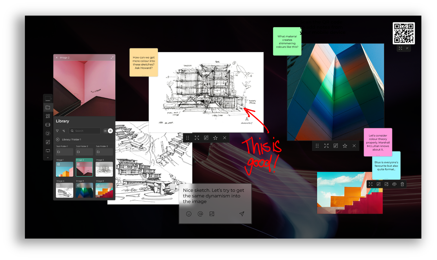 Shared workspace for building presentations, shaping interactive tools and running live workshop-style collaboration.