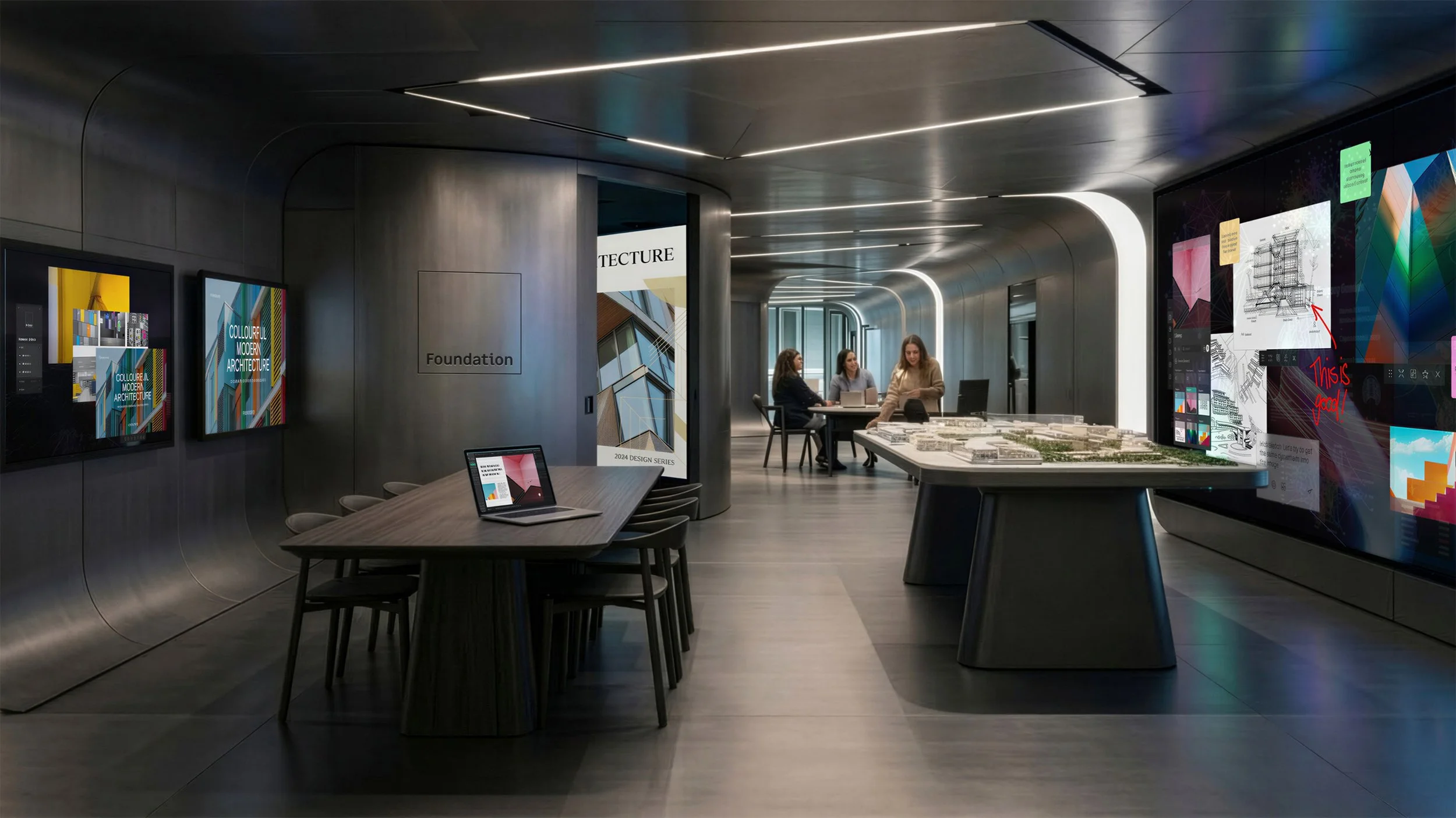 Responsive visual, audio and lighting layers that adapt in real time to content, users and room modes, creating a more dynamic environmental experience.