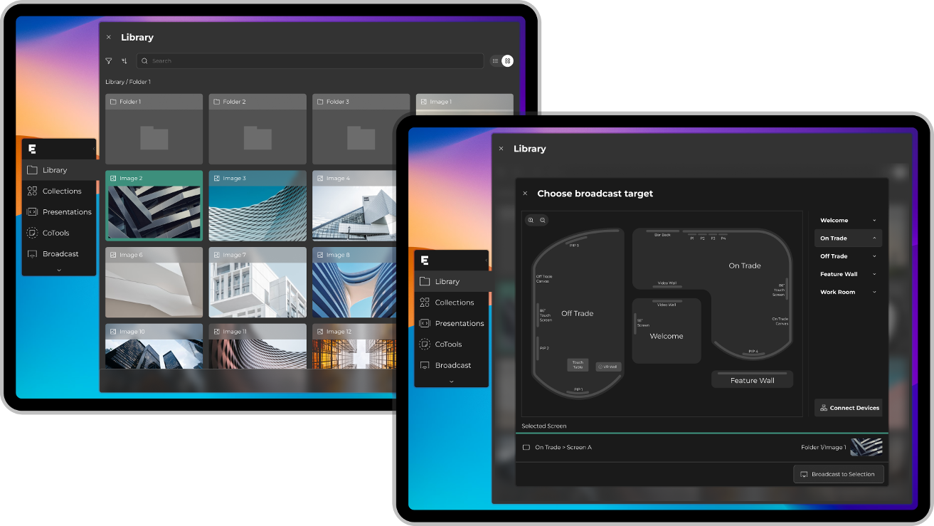 Deploy content quickly across selected endpoints, multiple screens or an entire space.